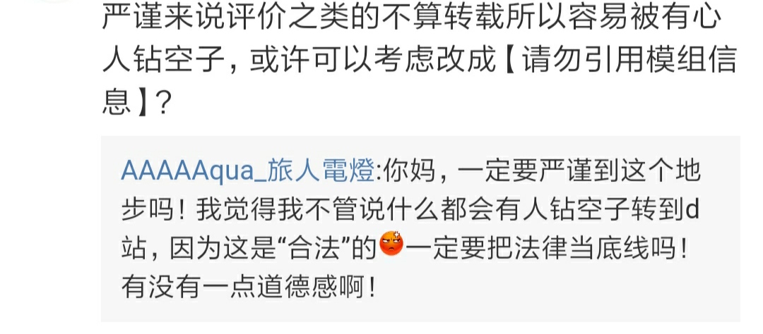 关于原作者认为“在dicecho讨论其模组不道德”的讨论