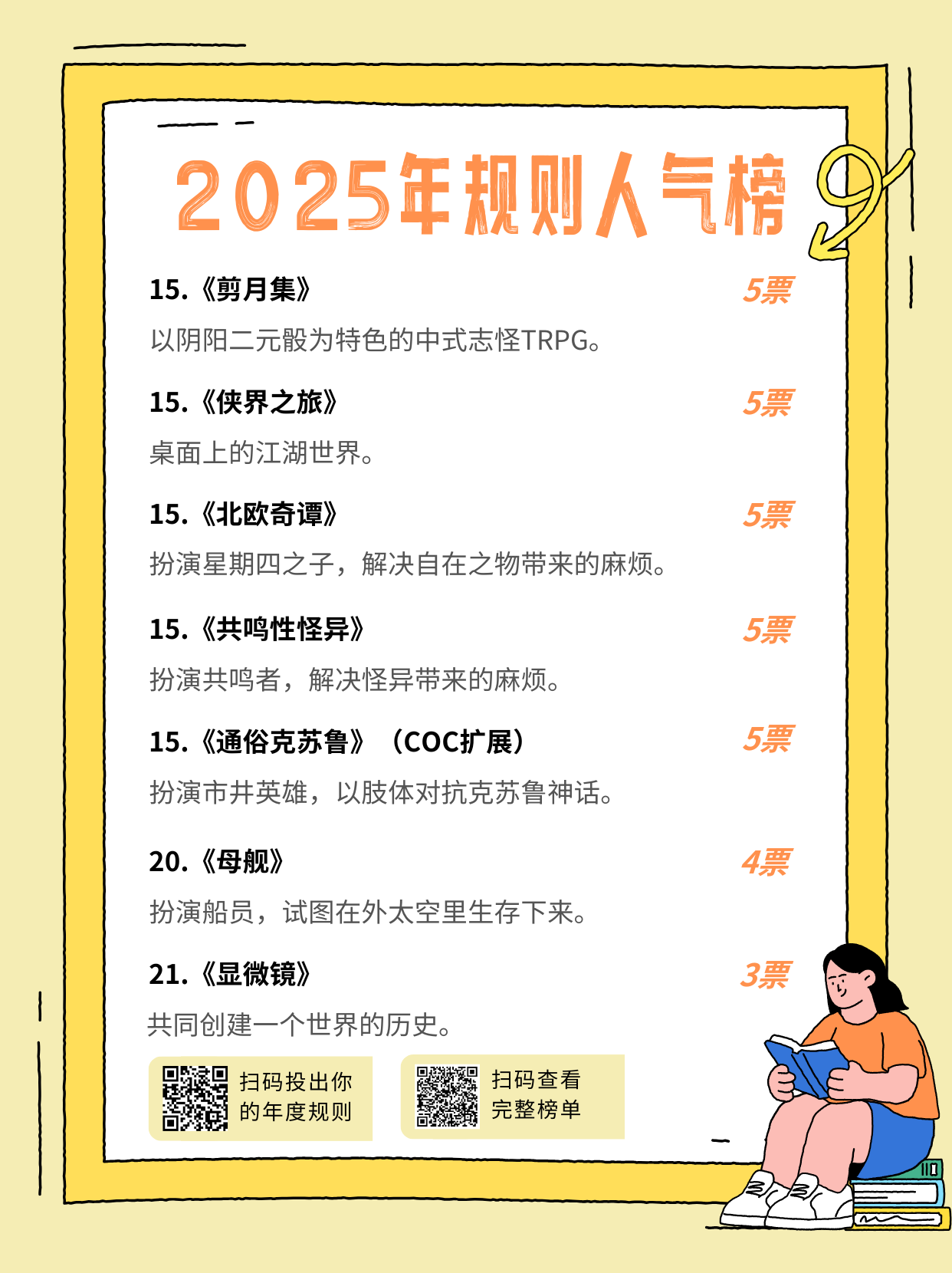 最初进行这个问卷调查是在2024年年底,当时是直接照搬了日本类似的统计的方式,但是在进行统计的时候发现了问题,很多人心目当中的年度模组其实是一些自制模组或无模组的规则,所以这次也是新增了对于规则的统计(结果工作量直接翻倍了!),希望能够在最终榜单里也能体现这些自制模组或无模组的规则。